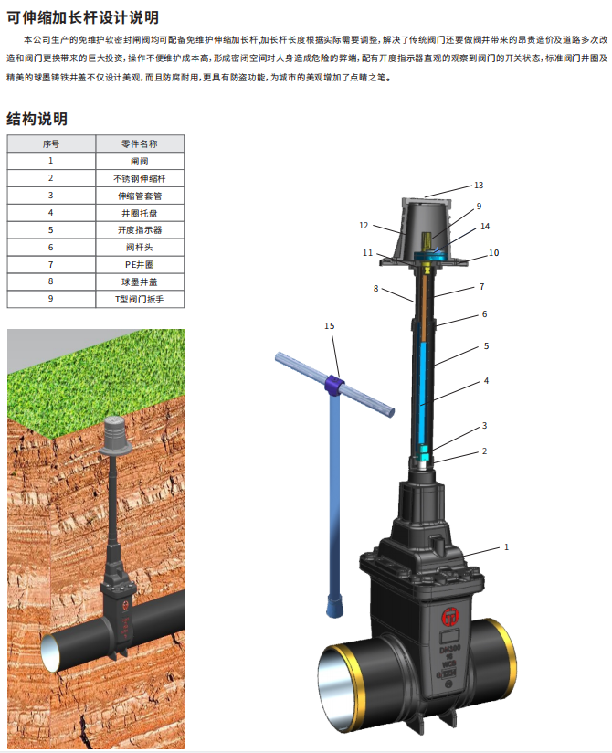 帶伸縮加長桿(閥井)燃?xì)忾l閥